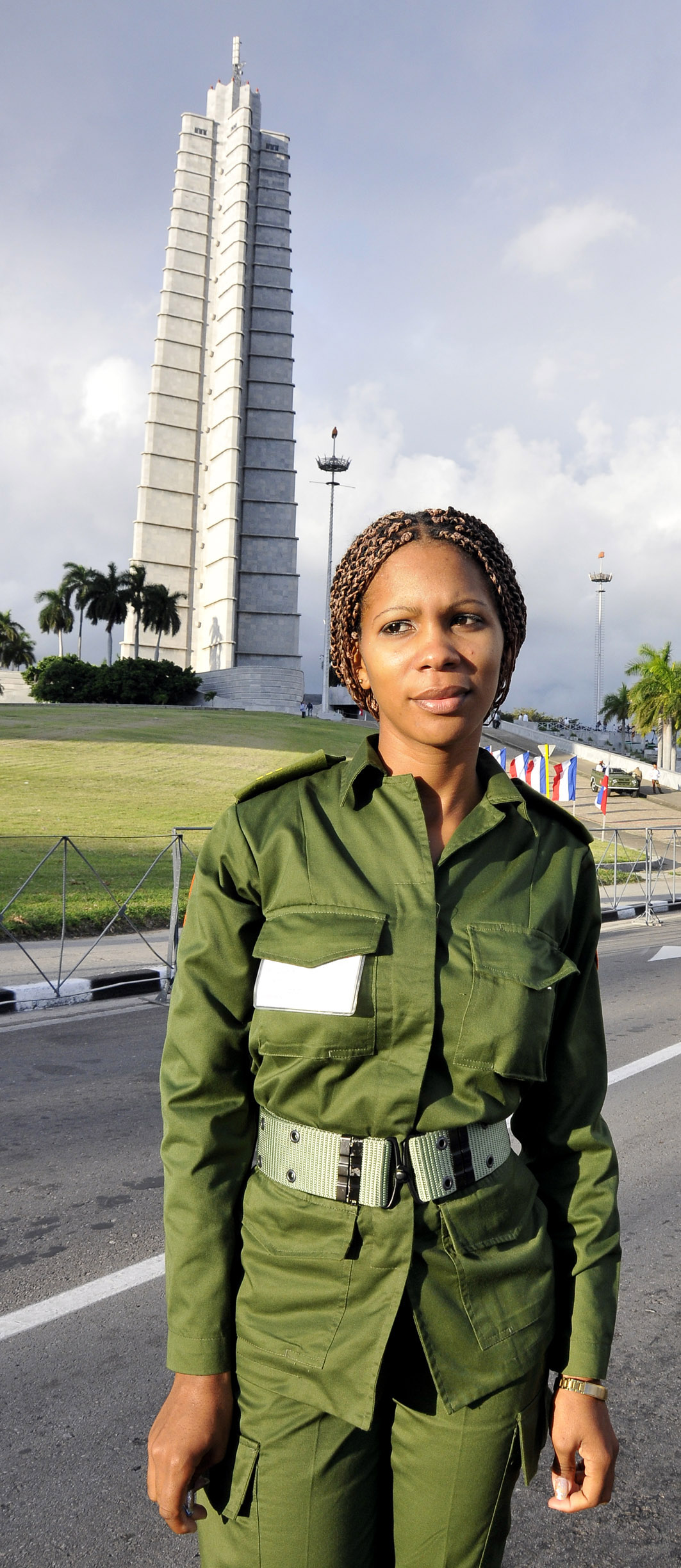 Por vez primera la cadete María Lourdes Pérez, estudiante de la Escuela Interarmas de las FAR General Antonio Maceo, Orden Antonio Maceo, participa en una Revista Militar de esta magnitud y se siente emocionada.