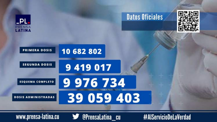 El archipiélago acumula así 39 millones 59 mil 403 dosis administradas de Soberana 02, Soberana Plus y Abdala y, además, poseen la dosis de refuerzo siete millones 433 mil 513 personas, precisa el parte del Minsap.