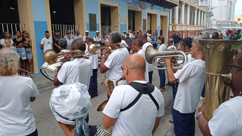 Y así, entre cantos, flores y lágrimas salió el féretro de la Casa de la Trova, mientras en la calle Heredia, respetuosamente formada y uniformada, la Banda Provincial de Conciertos despedía a Gabino Jardines Cisneros con temas cubanísimos.