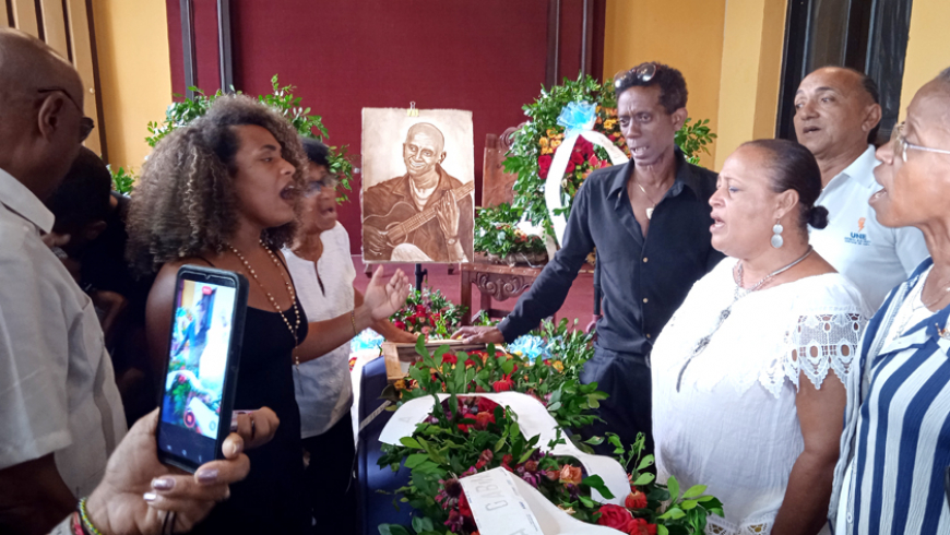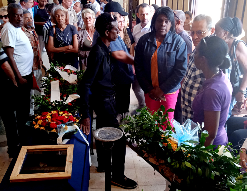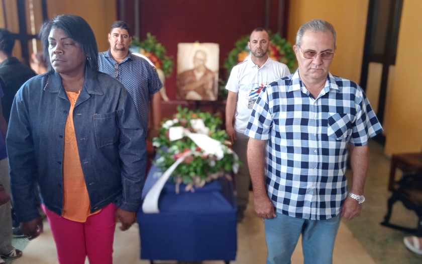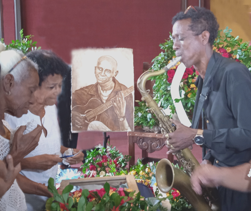 Junto al féretro, las ofrendas florales y la imagen al café del guitarrista, estuvieron los familiares más allegados; compañeros y amistades; músicos, trovadores, y personalidades, entre estas, Raulicer García Hierrezuelo y Rosa María Prades Bell, director provincial de Cultura y directora de la Empresa Comercializadora de la Música y los Espectáculos Miguel Matamoros.
