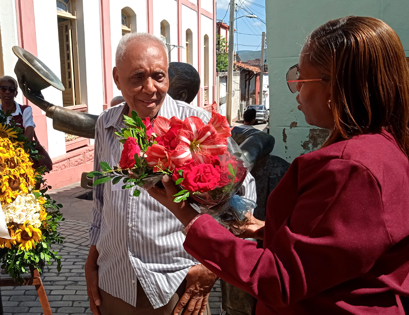 El festejo tuvo su apertura Junto a la imagen en bronce y a tamaño natural del autor de “Juramento”, “Son de la loma” y más de 180 composiciones, obra de la maestría artística del holguinero-santiaguero, José Rolando Montero Hernández, integrante del Taller Cultural Luis Díaz Oduardo.