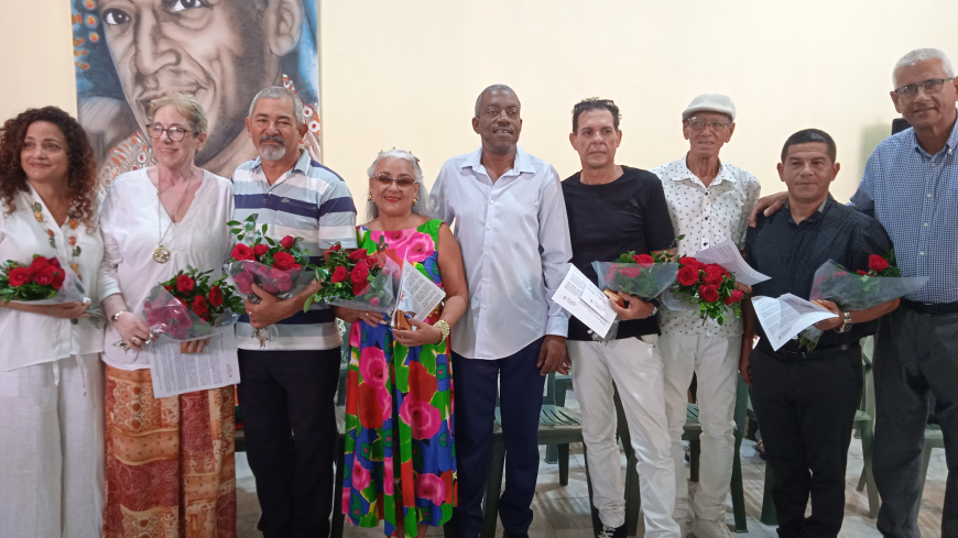Según explicó el conductor del acto, Dayron Chang Arranz, vicepresidente de la Uneac, a propuesta del CTA, y luego de los análisis correspondientes, la dirección del sector en el territorio decidió otorgar la distinción honorífica, que es “destinada a estimular y reconocer a artistas, intelectuales e instituciones con una relevante contribución a la cultura y en beneficio de la promoción cultural, que se traduce en bienestar del pueblo y en salud espiritual de este”. La recibieron: