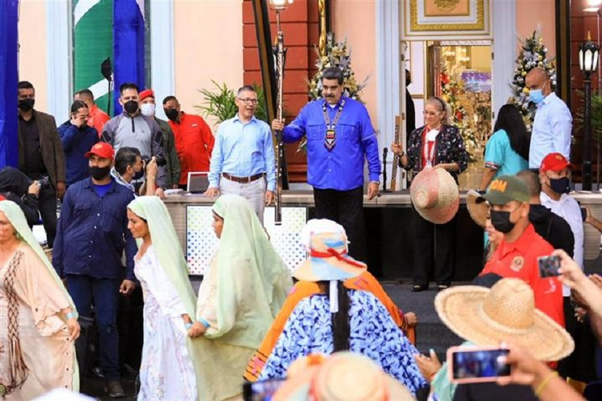 En la conmemoración por el Día de la Resistencia Indígena en el Palacio de Miraflores, sede de Gobierno, el mandatario recibió a representantes de las comunidades originarias del país que este miércoles realizaron una marcha en Caracas y condenaron la política de bloqueo contra la nación sudamericana.