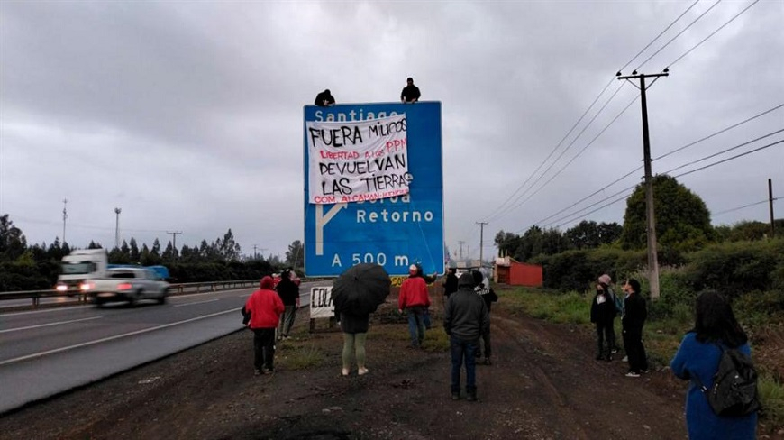 En los alrededores de la ciudad de Temuco, punto de arranque de la gira presidencial, se colgaron mantas con las principales demandas de los pueblos originarios, como la devolución de las tierras usurpadas por terratenientes y empresas madereras.