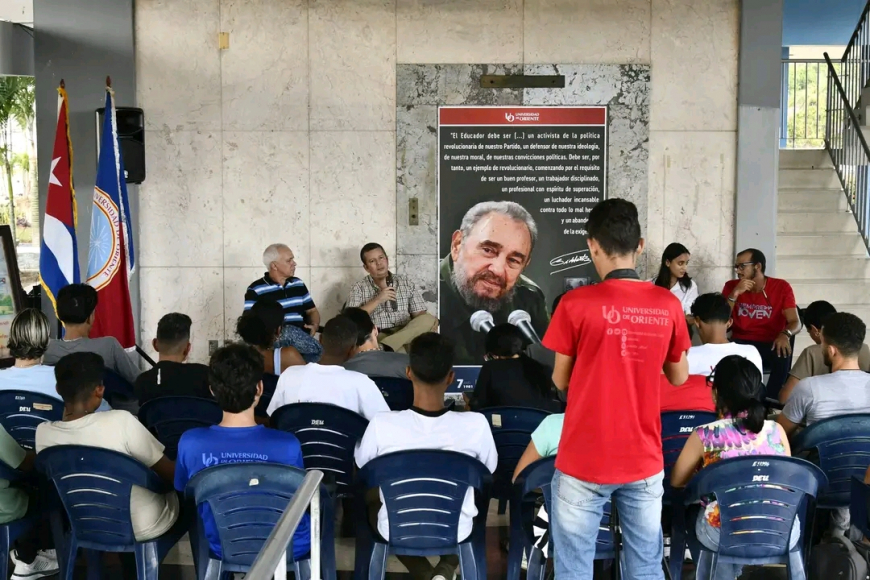 Estuvieron presentes en el conversatorio: la FEU Oriente, la Juventud UO y como panelistas, el Historiador de la Alma Mater oriental y el Jefe del Departamento de Marxismo, los cuales hicieron alusión a cómo llega Venezuela a este contexto actual.
