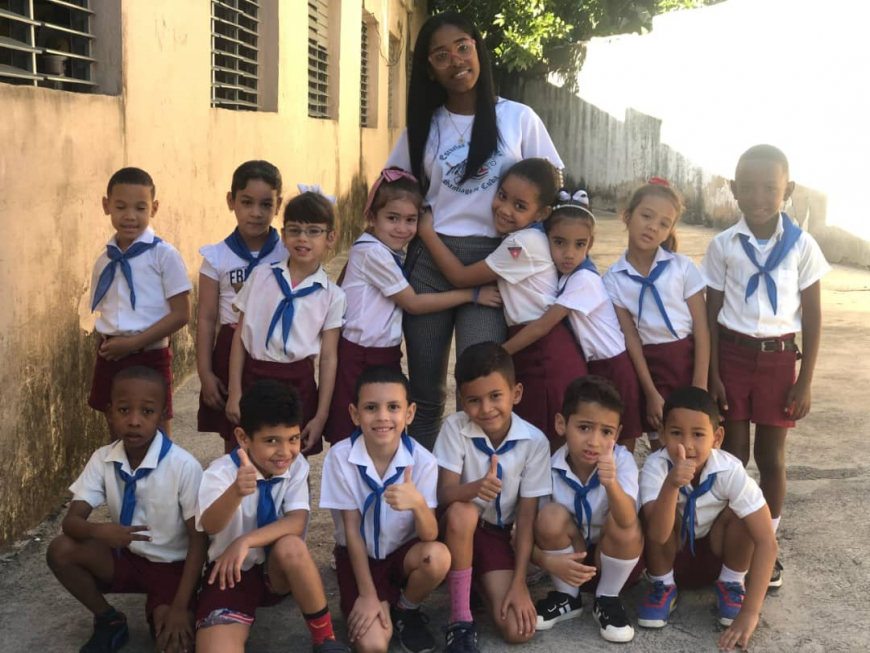 Más allá del aula, afirma, es una joven como todas «que sale, pasea; ama la música, las fiestas, el teléfono, las redes sociales, pero que tiene clara su responsabilidad», y con igual vehemencia integra la reserva especial pedagógica y se entrena como tal junto a Xiomara La Fuente, la coordinadora del 1er. Grado de su escuela. Asegura que entre los retos de la educación cubana está cambiar la percepción social de lo que es un maestro.