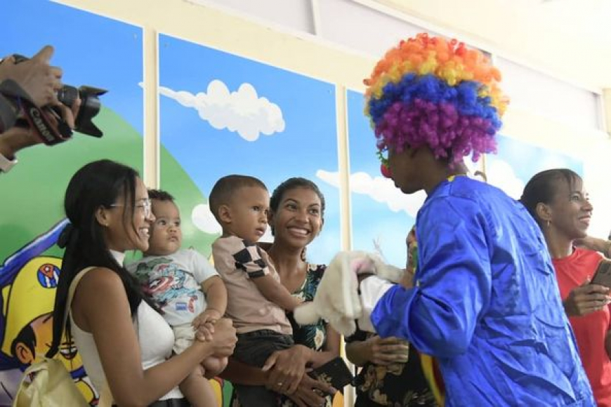 Entre música, globos y la mirada satisfecha de sus madres, los dos niños no dejan de sonreír mientras descubren las múltiples vivencias a su disposición en aquel entorno de orden, pulcritud y belleza que en lo adelante será su espacio de juegos y aprendizajes durante la primera infancia.