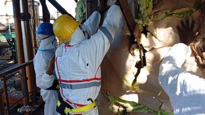 Las labores más complejas se concentran en la torre de destilación atmosférica T-101, donde se fracciona el crudo para obtener los derivados fundamentales. Eralides Bueno Calas, director de Mantenimiento, explicó que la estructura perdió totalmente su aislamiento térmico, por lo que fue necesario desmontarlo y reponerlo al 100 por ciento, tarea en la que intervienen la Unidad de Construcciones Militares, la Empresa de Construcción y Montaje Especializado (ECME) y la Empresa de Mantenimiento a Centrales Eléctricas (EMCE). “Sin esta torre no se puede procesar crudo”, afirmó.