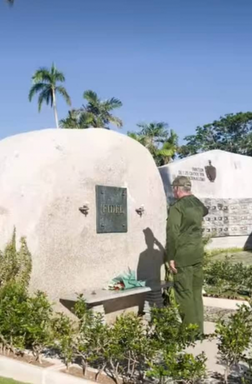Como punto final del homenaje, el Presidente del CDN se presentó ante el monolito que atesora las cenizas del Comandante en Jefe, Fidel Castro Ruz, quién, a nueve años de su muerte, «nos sigue hablando desde la inmortalidad de sus ideas y la fuerza de su legado», como asegurara Díaz-Canel el pasado 25 de noviembre.