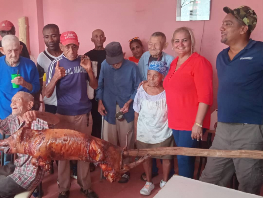 Al mediodía degustaron una exquisita caldosa criolla de carnes de res y viandas, todo bajo la supervisión del dietista del Hogar. "Es para mí un compromiso aportar y hacerlo precisamente en un lugar donde pasan su vejez personas muy humildes, trabajadores del campo, quienes se consagraron y dieron todo por la Revolución", manifestó la también miembro del Comité Nacional de la Asociación Nacional de Agricultores Pequeños.