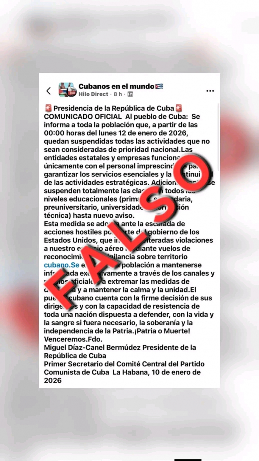 El contenido de dicho documento no emana de ninguna institución del Gobierno cubano. Su objetivo es sembrar la desinformación.