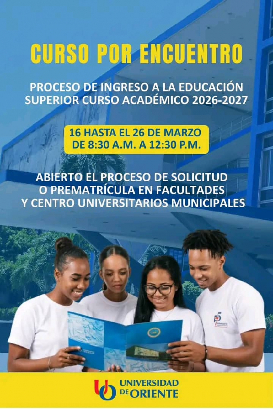 La Universidad de Oriente informó en su página en Facebook que inició la convocatoria a los interesados en cursar estudios universitarios en las modalidades de Curso por Encuentro y a Distancia, a partir de mañana lunes 16.